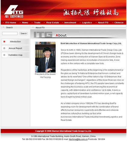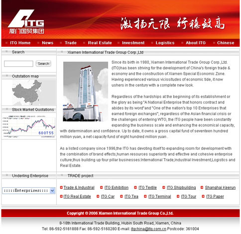 2006年,厦门国贸集团迎来了第一个25周年,我们为其重新设计了网站风格,包括集团网站及内部网站。