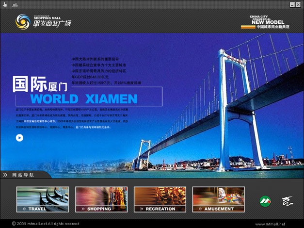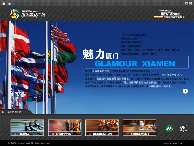 我们设计的第一个房地产项目网站,全国最大的SHOPPIN MALL,所以非常用心打造,全Flash动感页面最终赢得了客户的赞赏。